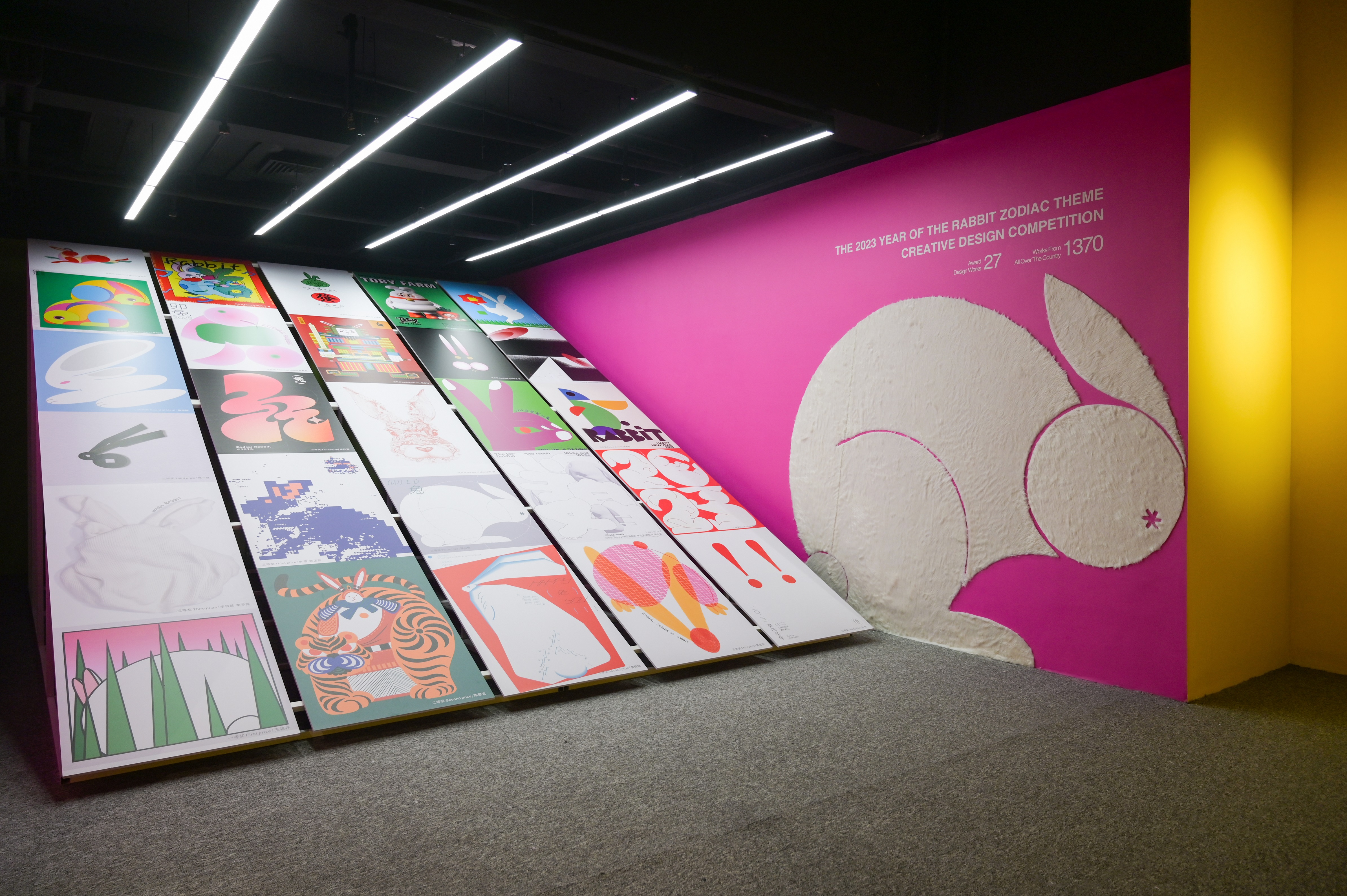 「兔年生肖主题设计展」,缘起于beat365手机版官网、XGDA西安市平面设计协会于2022年末共同策划、发起的“2023兔年生肖主题创意设计大赛”。大赛顺利落幕后,双方持续辐射创意能量,携手高新中大国际打造「兔年生肖主题设计展」,在城市商业中心地开启一场新年献礼,以展览的方式为公众带来全新艺术体验。