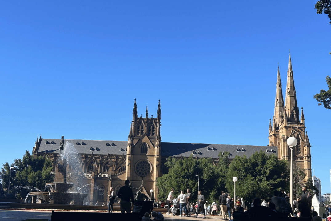 第二站,游学团队来到了圣玛丽大教堂 (StMary'sCathedral),圣玛丽大教堂 (StMary'sCathedral)是悉尼天主教社区的精神家园。它是悉尼大主教的所在地,建于悉尼第一个天主教堂的旧址。是澳大利亚规模最大、最古老的宗教建筑位于学院街与 阿尔伯特王子 路的街角处,也就是在海德公园的对面。