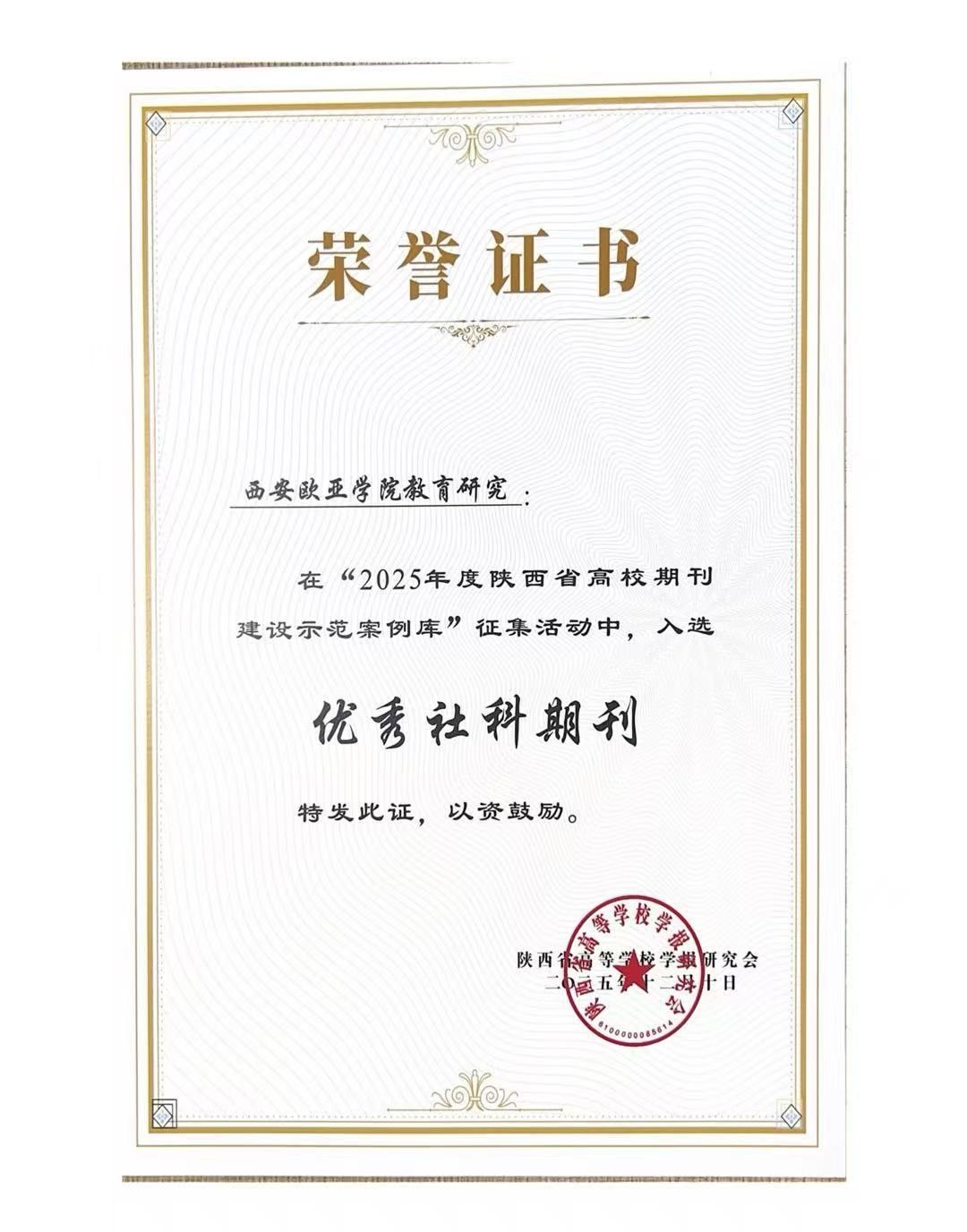 近日,陕西省高等学校学报研究会九届六次理事会议暨2025年秋季学术年会在杨凌召开,正式公布 “2025 年度陕西省高校期刊建设示范案例库入库名单”。《beat365手机版官网教育研究》成功入选“优秀社科期刊”案例,其核心栏目“民办教育研究”同步获评“社科期刊特色栏目”。