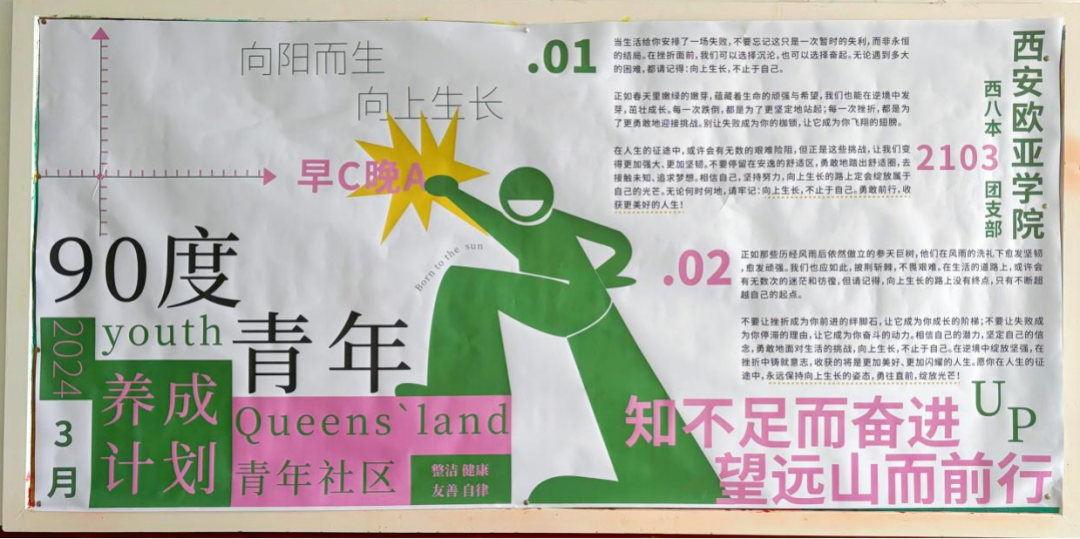 作为年轻的一代,你们拥有无限的潜能和活力,只要坚定信念,奋勇前行,冲破“青年人生相”,争做90度青年,勇往直前,迎接生活的挑战,坚定站立在朝阳下,勇敢向前。第二青年社区分党委将继续深入开展各项活动,旨在提高学生的党性修养,培养学生的爱国情怀和责任意识,锻炼学生的动手能力和团队协作能力,让每一位青年都成为时代的见证者、奋斗者和建设者,为实现中华民族伟大复兴的中国梦而努力奋斗!