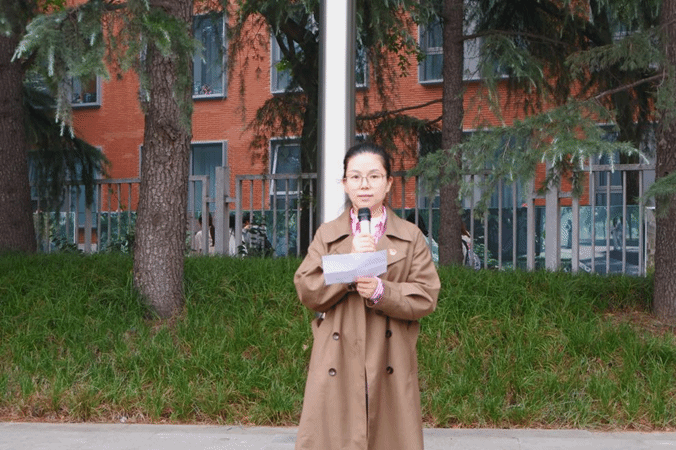 紧接着,优秀学生代表宋怡冉同学分享了她在国旗下的感悟与思考。她说到作为新时代青年,应铭记历史,不忘初心,牢记使命,以实际行动践行党的宗旨,努力学习,以优异成绩回报祖国,为实现中华民族伟大复兴的中国梦贡献青春。