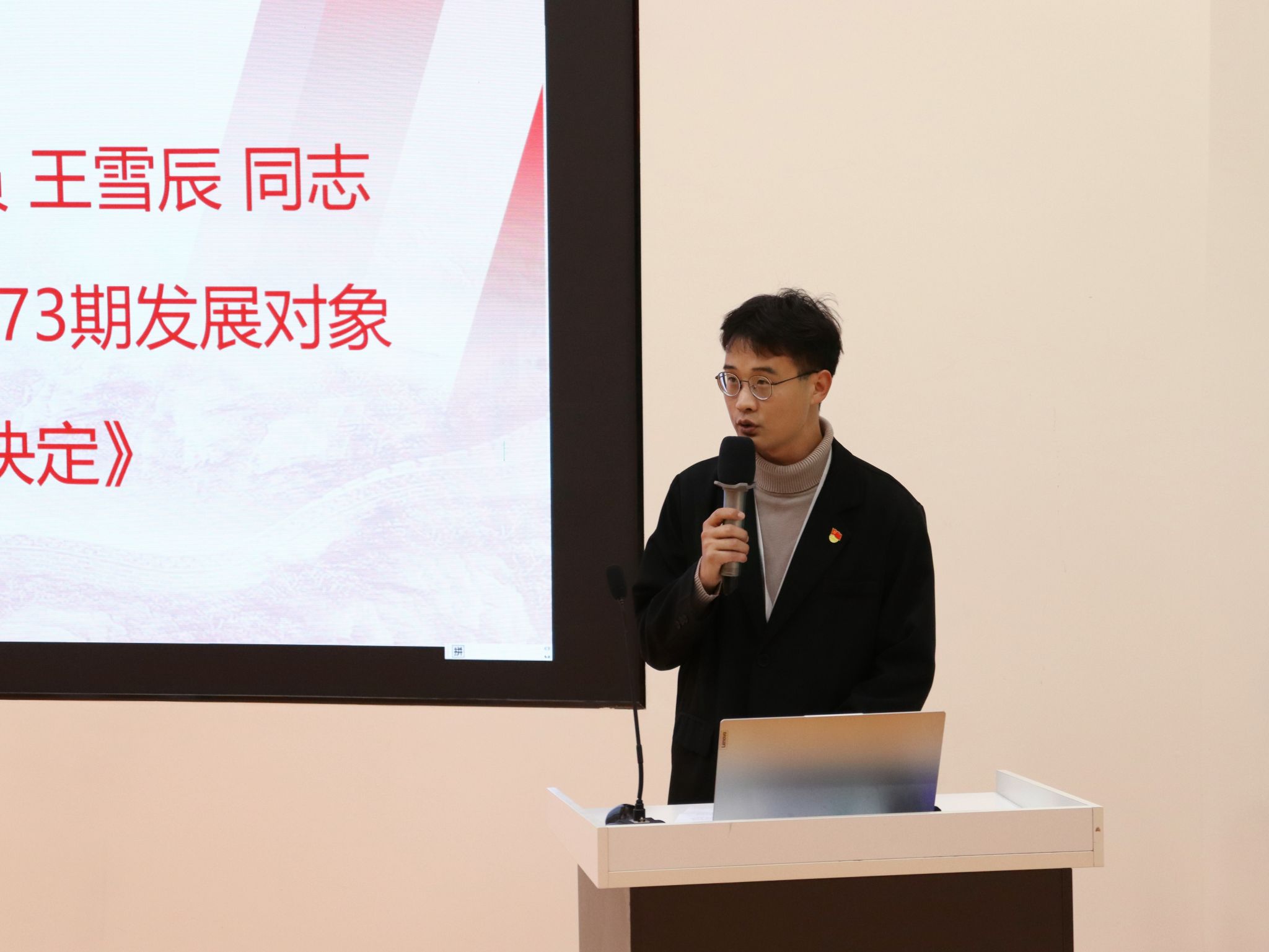 大会第二项:由第二青年社区分党委副书记张庚同志宣读《第二青年社区分党校第73期发展对象培训班结业决定》。