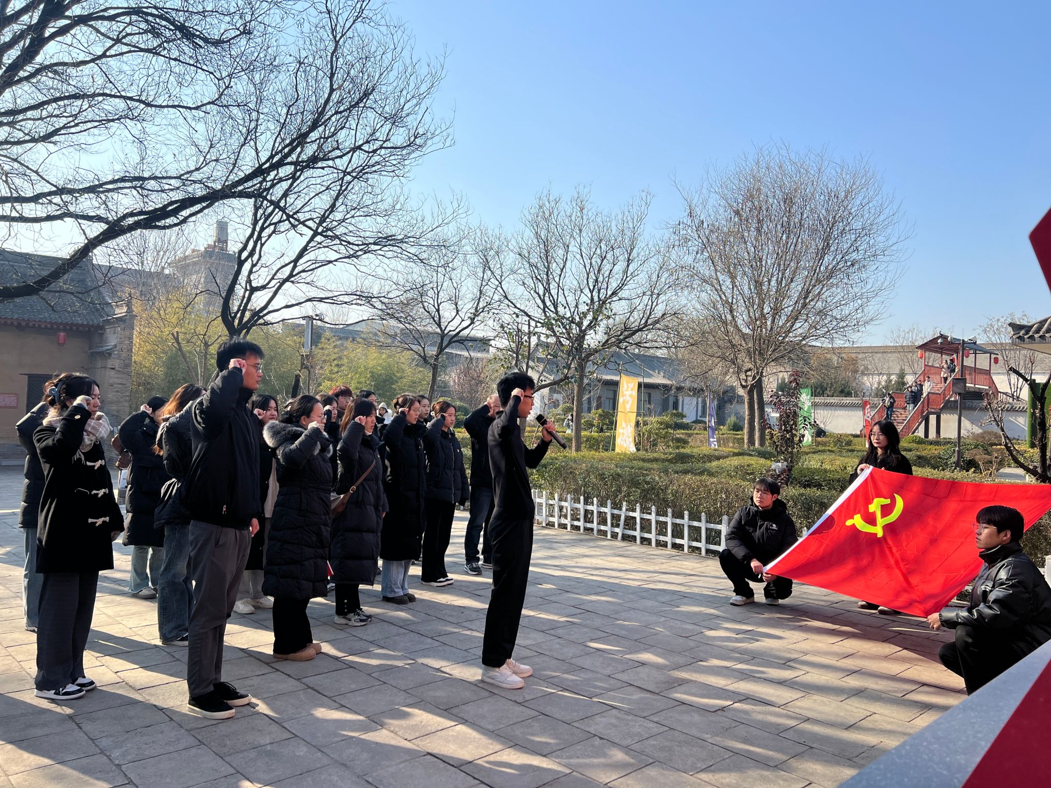 为深入学习贯彻党的二十届三中全会精神,引导师生党员深化对中国共产党革命历史的理解和感悟,传承红色基因,坚定理想信念。2024年12月17日,第二青年社区分党委师生党员代表共计30人,前往陕西省咸阳市泾阳县安吴青训班红色教育基地和郑国渠,开展“重温峥嵘岁月、传承红色基因”的主题党日活动。
