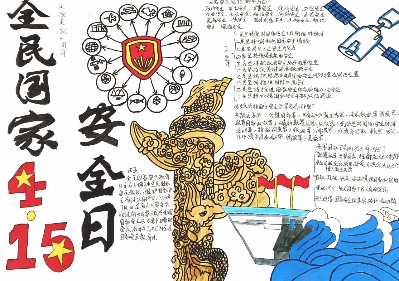 为深入学习宣传贯彻总体国家安全观,扎实推动国家安全教育向纵深发展,引导学生牢固树立“国家安全,人人有责”的使命意识,自觉将维护国家安全的理念转化为日常生活中的实际行动,近日,第二青年社区分党委开展了国家安全教育主题手抄报评选活动。