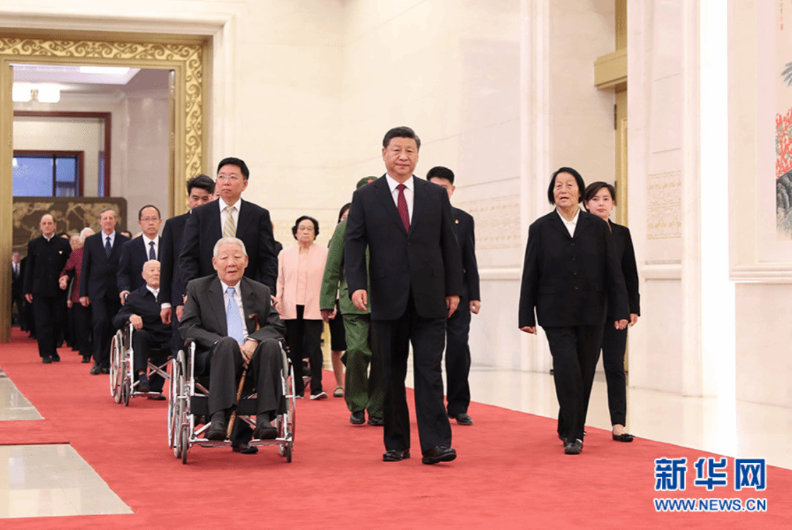 9月29日,中华人民共和国国家勋章和国家荣誉称号颁授仪式在北京人民大会堂金色大厅隆重举行。中共中央总书记、国家主席、中央军委主席习近平同国家勋章和国家荣誉称号获得者一同步入会场。 新华社记者 丁海涛 摄