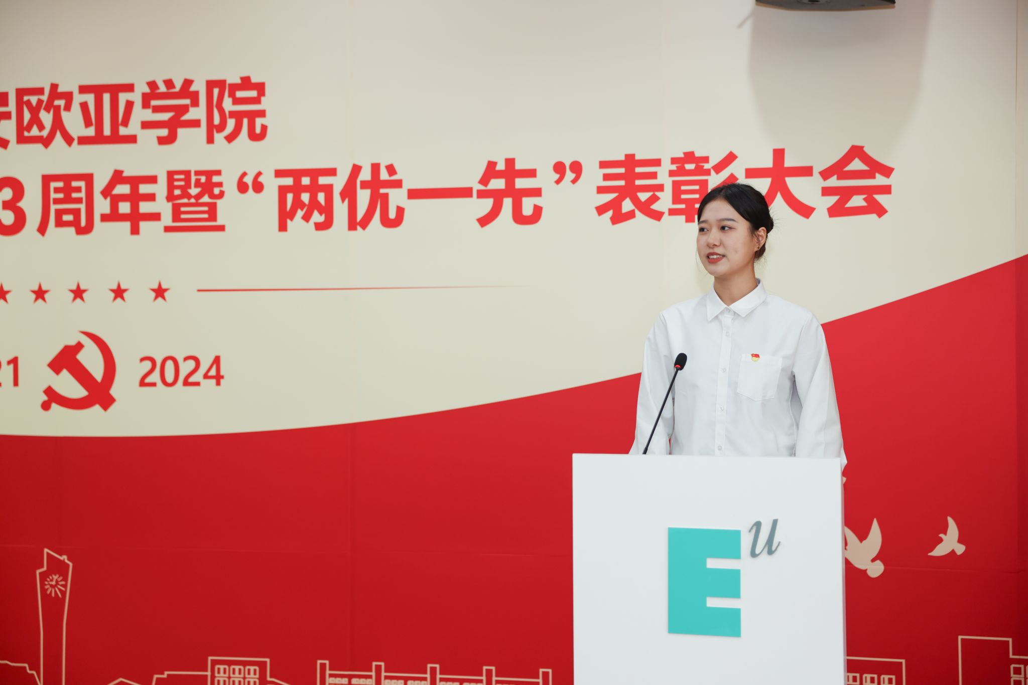 第三青年社区分党委书记陈振星、金融与数据科学学院教师党员李菁及第一青年社区学生党员李卓分别代表“先进基层党组织”和“优秀共产党员”在大会进行发言。