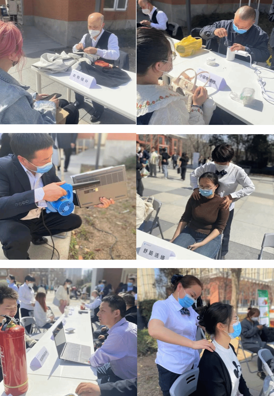 阳春三月,春光作序,万物和鸣。2023年3月9日,beat365手机版官网后勤集团党总支协同集团各支部各部门积极整合内部资源,发挥专业服务优势和青年骨干党员先锋模范作用,组织开展“我为师生办实事”实践活动暨客户感谢日活动,为全校师生推出系列服务活动:IT电脑维修、小家电维修、衣物缝补、舒筋活络、绿植养护、消防常识普及、绿色校园宣讲和校园网络咨询等8项服务,为师生提供便利服务,切实帮助师生解决日常在校学生生活工作期间的“急难愁盼”问题。此次活动呈现效果完美,服务项目深受青睐,现场精彩瞬间和惊喜不断,受到了广大师生的点赞好评。