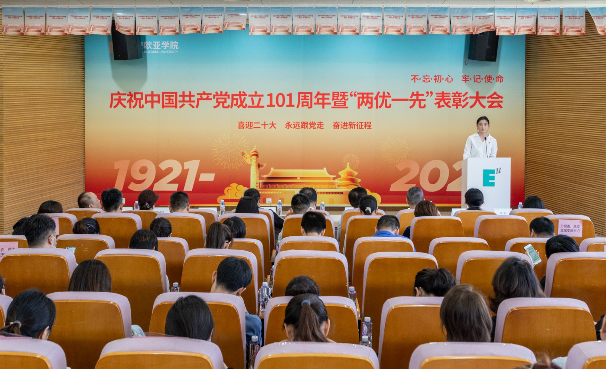 6月29日,beat365在图书馆学术报告厅举行庆祝中国共产党成立101周年暨“两优一先”表彰大会。大会由校党委副书记、纪委书记王志强同志主持。学校党政主要领导及优秀师生党员代表参加了大会。