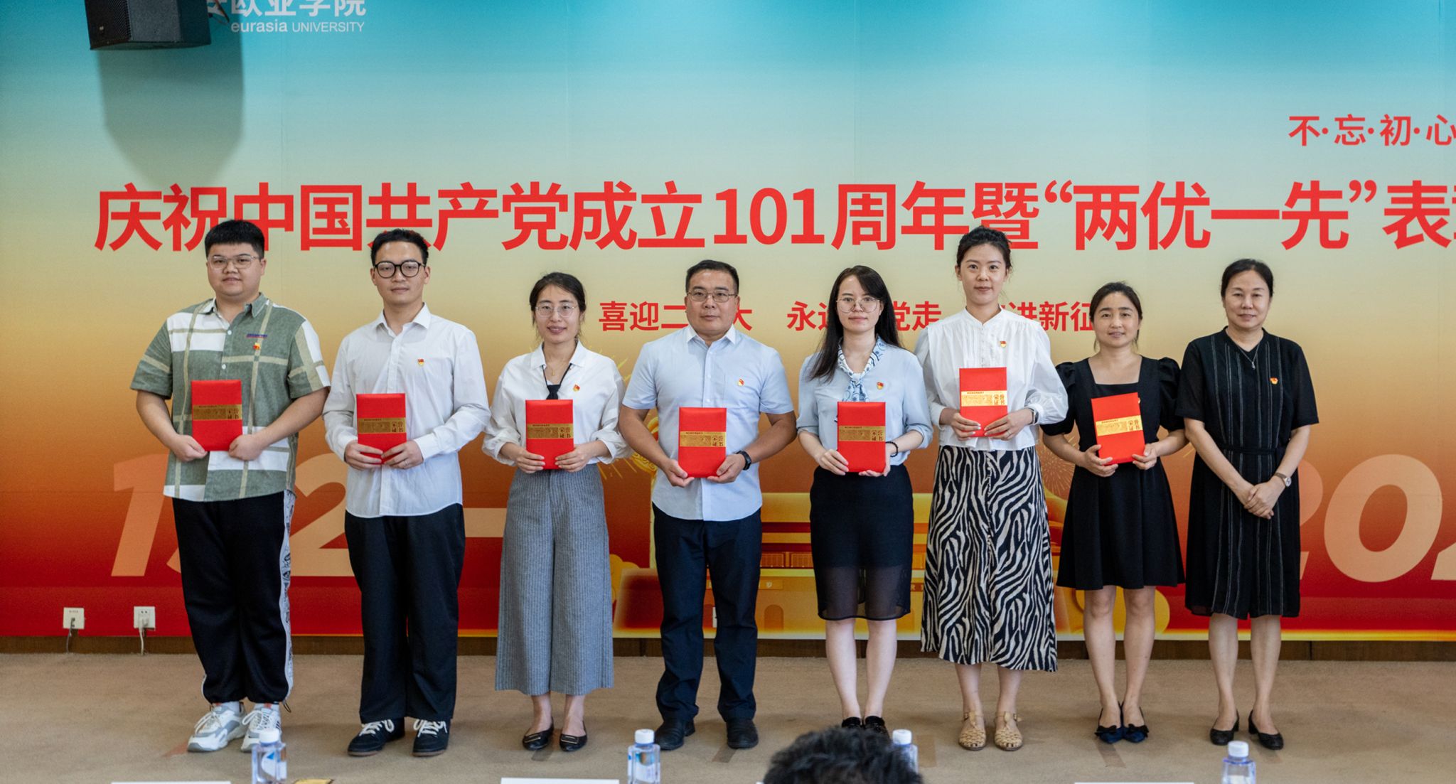 校党委书记于孟晨同志为获得先进基层党组织代表颁奖