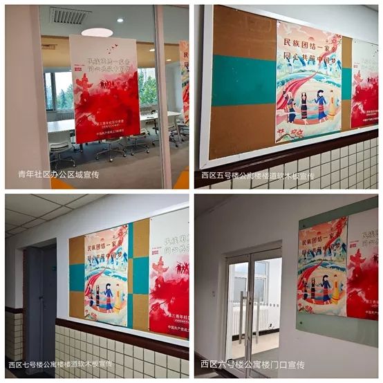 为了增强民族政策宣传,第三青年社区分党委开展了海报设计大赛活动。同学们的海报画面融汇了中国共产党领导下的各民族大团结景象,底板更是增添了三山五岳,五湖四海的广阔天地,将九百六十万平方公里的华夏照映的蔚然成风。本次活动共计收到设计作品70余幅,参赛作品从不同的角度诠释和宣传了民族政策。现将优秀精美的海报分别张贴在办公区和学生宿舍区,增添了民族团结的浓厚氛围。