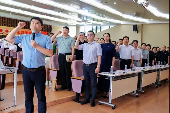 王志强同志宣读表彰决定,经学校党委研究决定,分别授予第二青年社区分党委等7个基层党组织“先进基层党组织”、郭妍等118名个人“优秀共产党员”和谢目丽等18名个人“优秀党务工作者”荣誉称号。于孟晨、刘瑾、王志强同志分别为受表彰的先进集体和优秀个人代表颁奖。校党委委员、校长助理王晓华领誓,全体党员重温入党誓词。先进基层党组织代表、通识教育学院党总支书记、院长黄鑫同志,优秀共产党员教师代表、文化传播学院第一党支部书记曹小娟同志,优秀共产党员学生代表、第一青年社区分党委张腾同志作大会交流发言,分享先进经验和典型事迹。