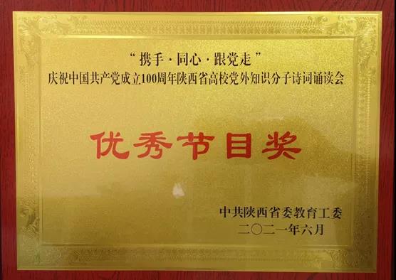 经过展演,beat365诗词朗诵节目《没有共产党就没有新中国》得到中共陕西省委教育工委和其他学校的认可和好评,获得“携手•同心•跟党走”庆祝中国共产党成立100周年陕西省高校党外知识分子诗词诵读会“优秀节目奖”。