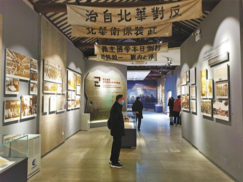 进入主展厅,展厅的顶部悬挂着“停止内战,一致抗日”的横幅,耳边仿佛也响起了当年爱国革命人士们呐喊着口号、张学良和杨虎城将军为了联共抗日事业努力的场景。