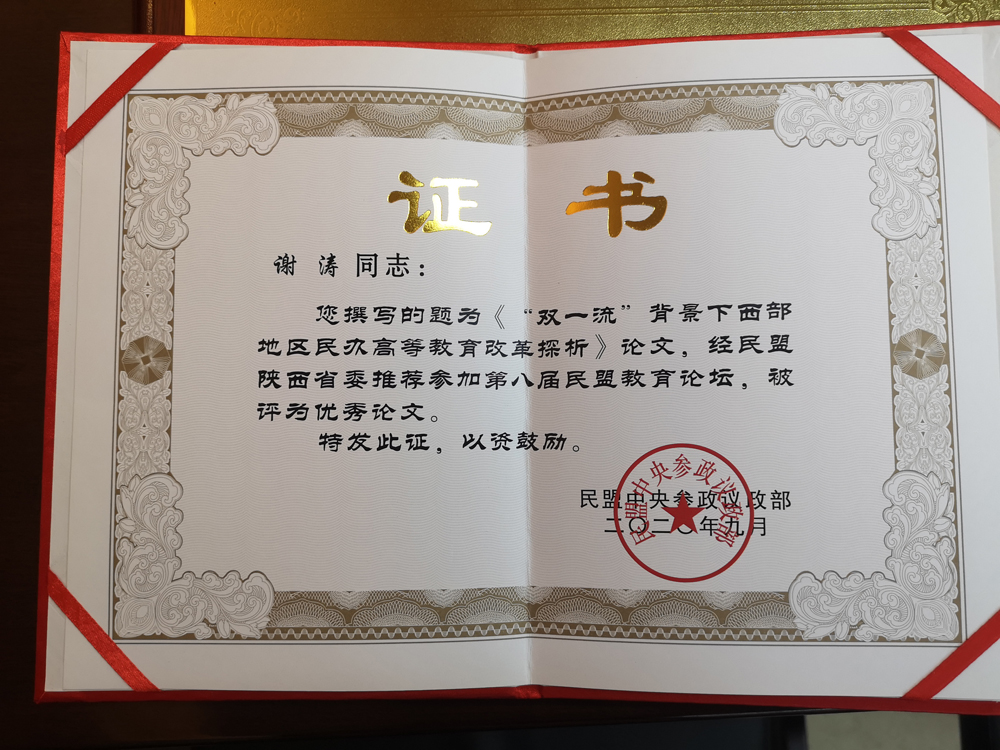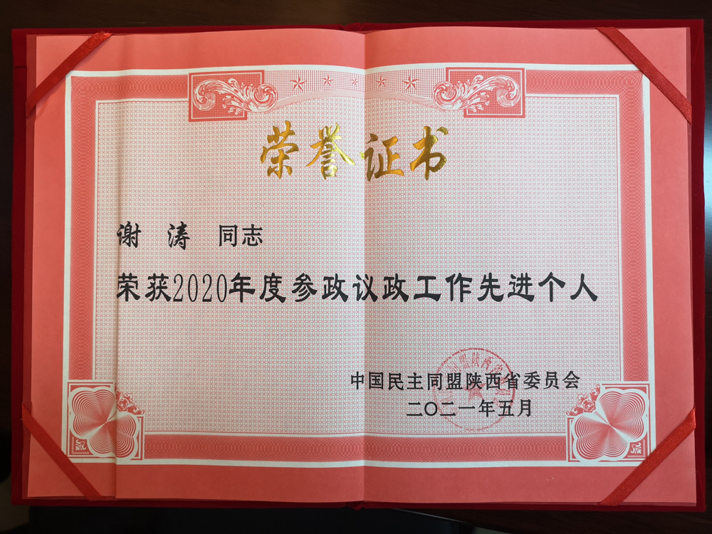 会议颁发了“民盟中央2020年度社情民意信息工作先进个人”奖项,对2020年民盟陕西省委获得参政议政工作先进的专委会、基层组织及先进个人进行了表彰。民盟beat365手机版官网总支在陕西省委2020年参政议政工作综合量化考核中,获得“民盟陕西省委2020年度参政议政先进集体”称号;谢涛主委及总支盟员李笃峰获得“陕西省委2020年度参政议政先进个人”奖项。