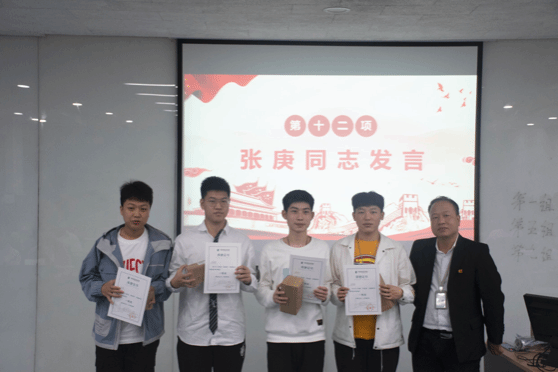 最后,张庚老师为获奖同学颁发了证书并作了总结讲话。他指出,举办党史知识竞赛,是为了增强同学们学习党史的主动性和自觉性,达到以赛促学的目的。希望同学们今后以更加饱满的热情、高昂的斗志投入到日常学习和生活中,为祖国的发展添砖加瓦,以优异的成绩迎献礼建党百年。