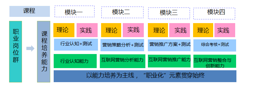 她本人承担商科学科平台课《互联网营销》的课程建设工作,该课程以具体互联网营销任务为依托,以营销原理为基础,以互联网营销工具运用为重点。通过对本课程的学习使学生理解和掌握互联网营销的基本理论,比较系统地掌握从事互联网营销活动的基本方法和策略,培养学生观察问题、分析问题、解决问题的能力;并为企业营销实践与市场运作提供理论基础与决策参考,为各级工商企业、管理部门、各类营销及金融机构培养具备互联网营销知识和技能、有开拓和创新精神、适应市场经济发展需要的应用创新型人才。