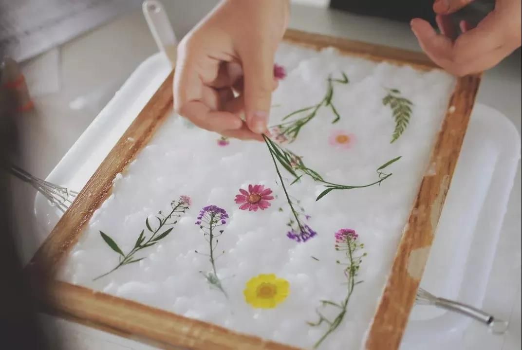 1.花草与纸合二为一,散着清香,描绘出一幅别样的画意。花草纸不仅带有古法造纸的智慧,又融合了花草间自然的美,更让人体验到古老传统文化的独特艺术之美。
