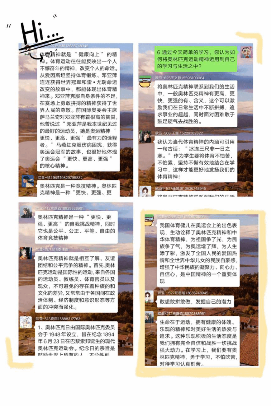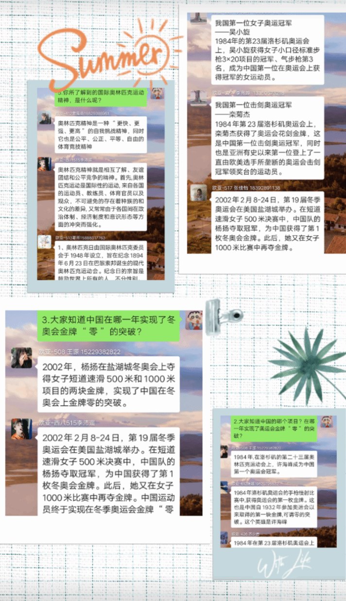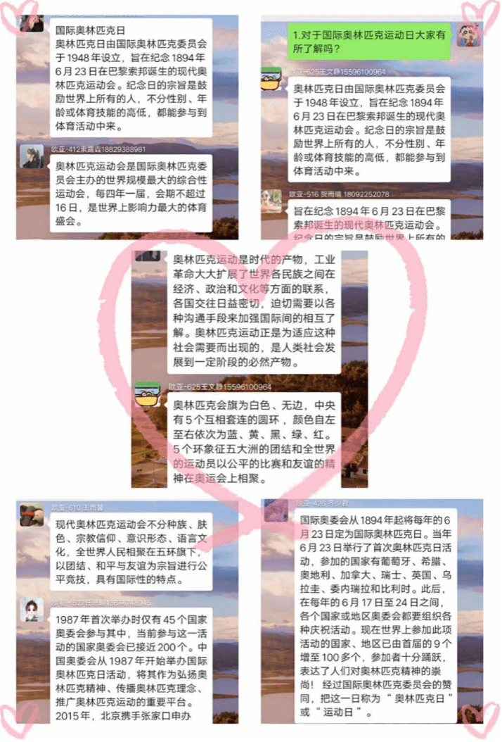 通过此次丰富多彩的活动使同学们了解到了奥林匹克运动精神,同时,希望同学们在日常生活与学习中发扬勇往直前大无畏的精神,增强身体素质,共同抗击疫情。