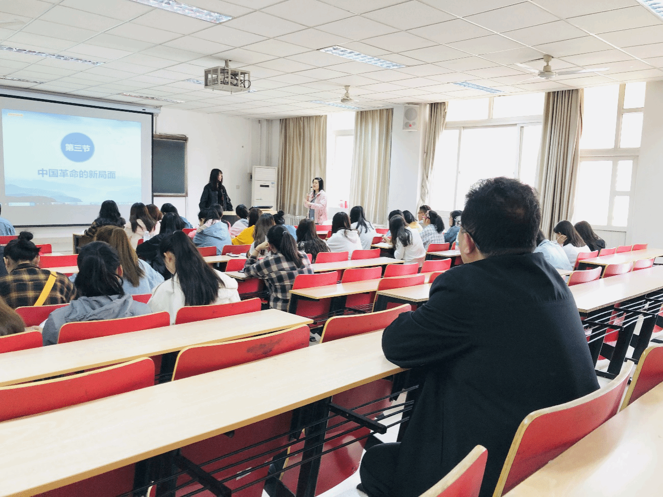4月22、23、30日,于书记走进思政课堂,分别听评了聂晶老师《思想道德修养与法律基础》、赵小荣副教授《毛泽东思想与中国特色社会主义理论体系概论》、管惠娟老师《中国近代史纲要》三门思政课程,对照《beat365手机版官网教师课堂观测表》为三名思政课教师进行评价打分,并反馈课堂授课情况。4月24日,于书记还走进专业课堂,听评了马妍老师《现代人力资源管理》专业课程,实际了解“思政课程”转变“课程思政”落实情况,深入挖掘其他课程和教学方式中蕴含的思想政治教育资源,为实现全员全程全方位育人进行了深入思考与探索。