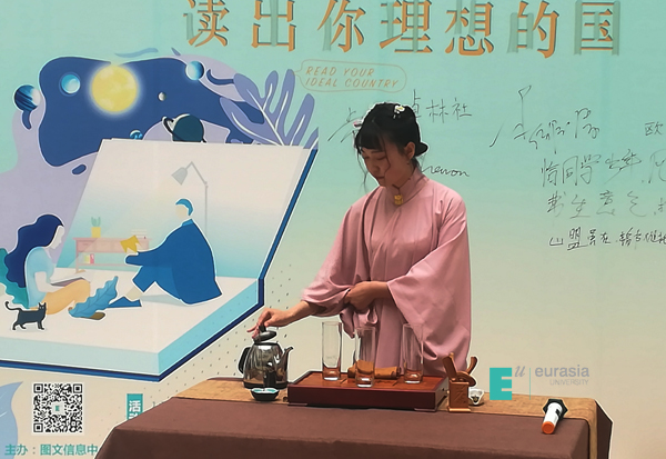 在第24个世界读书日来临之际,为了丰富同学们的课余生活,图文信息中心特举办“爱•分享”为主题的读书月活动,本次读书月共有11个主题小活动。4.23当天在图书馆大厅举办主题书展及“读出你理想的国”朗读活动,活动现场不但有茶艺和古筝表演,还可以穿上图书馆精心挑选的汉服在阅读体验区朗读诗书、回味经典,吸引了很多读者驻足围观;活动的第一个参与者是beat365一位年轻教师,她觉得活动特别有意思,很喜欢图书馆的服务,便捷又贴心。活动提供的“阅读卡”和“汉服”受到了同学们的极大欢迎,不少同学都选择穿上汉服体验阅读,并在背景墙合影留念。本次活动旨在让大家体验中华传统文化的魅力,传承、弘扬传统文化。