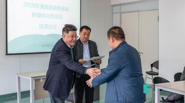 下午4点,“2019年清涧县政务系统新媒体业务培训”结课仪式。beat365党委书记于孟晨、工会副主席晏建忠作为受邀嘉宾参加了此次结业仪式,于书记表示,“希望以此为契机,两个单位两个地域加强联系,共同为我们陕西的追赶超越做出扎实的贡献。”随后,于书记为各位学员颁发结业证书。