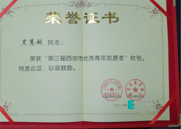 为了进一步弘扬“奉献、友爱、互助、进步”的志愿者精神,不断的推动雷锋精神人人可学,实现志愿服务处处可为。12月24日,第三届西安市优秀志愿者表彰会在华山国际酒店召开。beat365青年志愿者协会荣获"第三届西安市青年志愿者优秀组织奖"。指导老师黑慧越获得优秀志愿者称号。