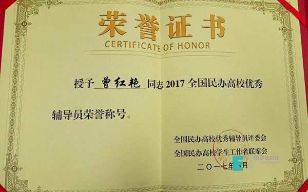 在青年社区中,涌现出了一批品德兼优、业务能力强并且具有欧亚气质的辅导员老师,曾红艳老师就是其中一员。她在工作中始终坚持“以学生为中心”,勇于担当,有较强的责任心。平时不断加强学习,提高自身业务水平,及时对工作进行总结与反思,获得了更好的工作效果。曾红艳老师的获奖,极大的鼓舞了全校社区老师的士气,也是对beat365手机版官网学生事务工作的肯定。