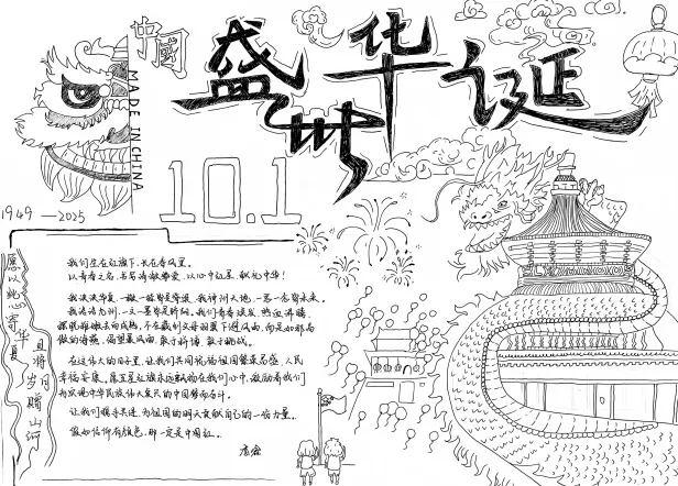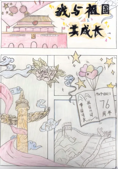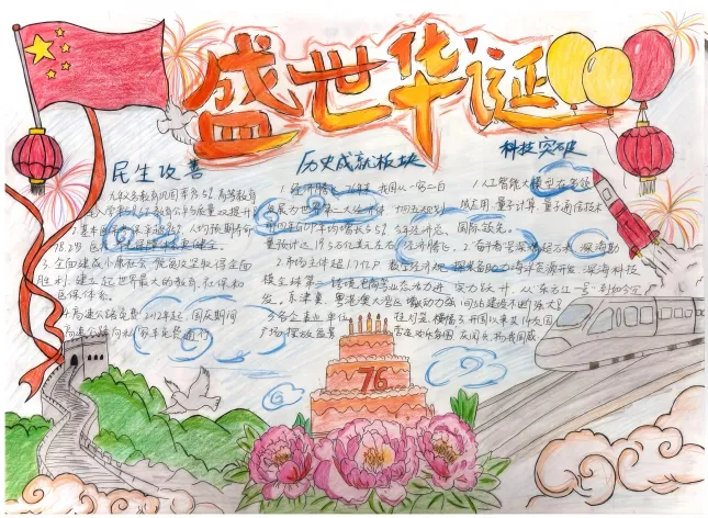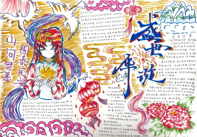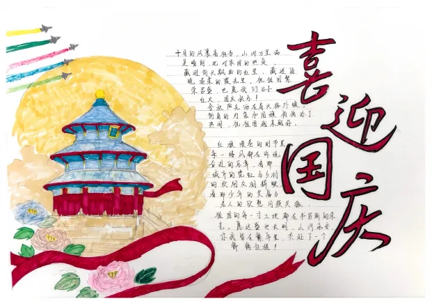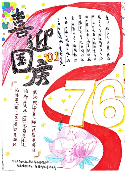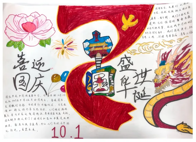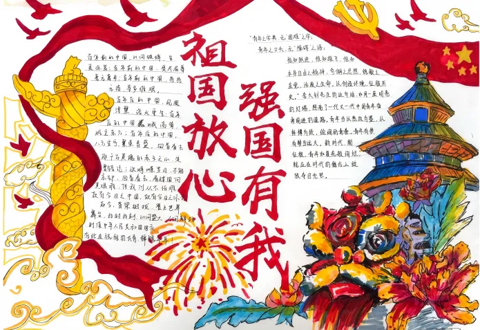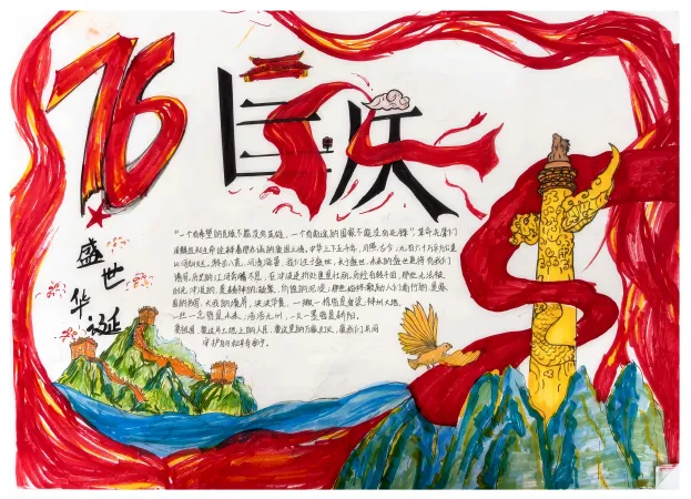 此次活动得到了同学们的积极响应,共收到手抄报作品30份。同学们饱含深情,一笔一划将对祖国的美好祝福凝于笔尖,用斑斓色彩勾勒出山河无恙、祖国繁荣的壮丽图景。