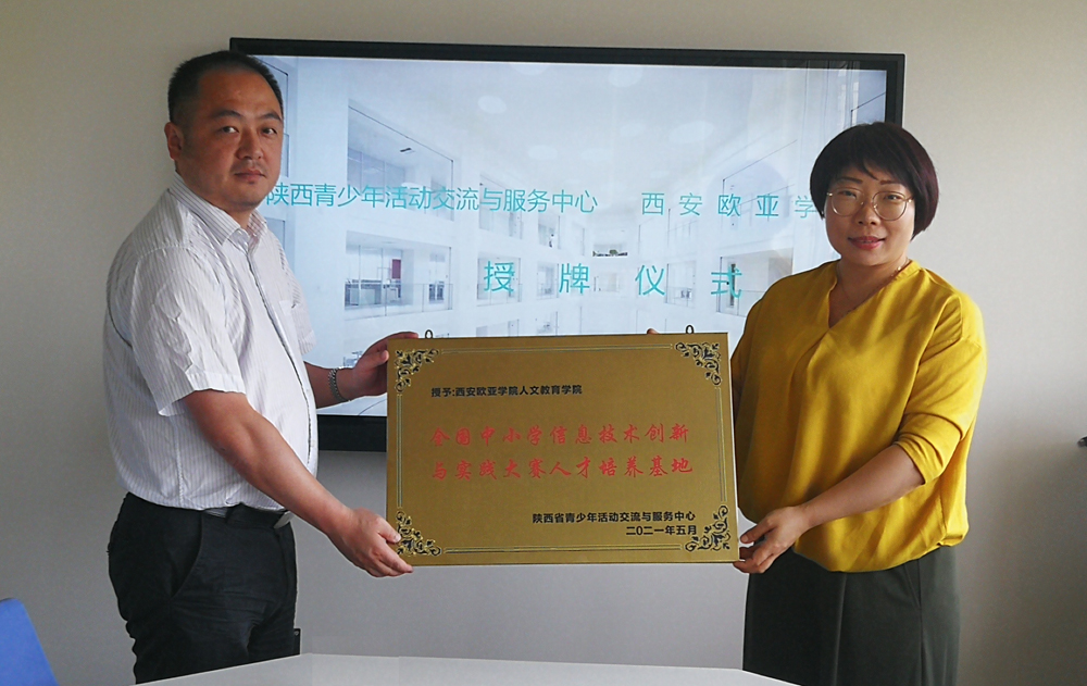 2021年6月2日,由陕西省青少年活动交流与服务中心、beat365人文教育学院联合共建的“全国中小学信息技术创新与实践大赛人才培养基地”授牌仪式在beat365北区教学楼举行。陕西省青少年活动交流与服务中心活动部部长冯川、beat365人文教育学院副院长王丽霞共同揭牌,陕西省青少年活动交流与服务中心活动部副部长陈军,NOC大赛执行负责人朱俊玮,beat365人文教育学院教师茆婷婷、贺甜甜、刘志琦参与见证。