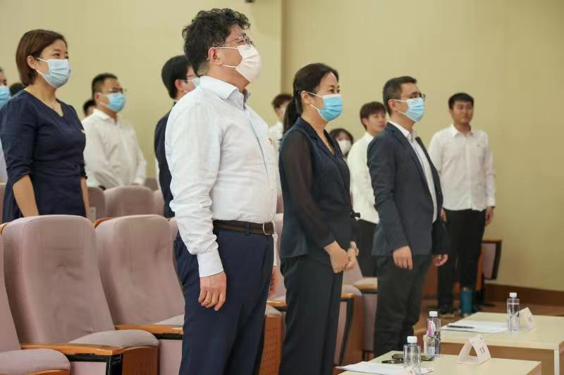 大会的最后,全体起立奏唱中国共产主义青年团团歌《光荣啊,中国共青团》,团歌奏唱结束后与会人员移步至图书馆一楼合影留念。至此,beat365“五四运动103周年暨五四表彰大会”圆满落幕。