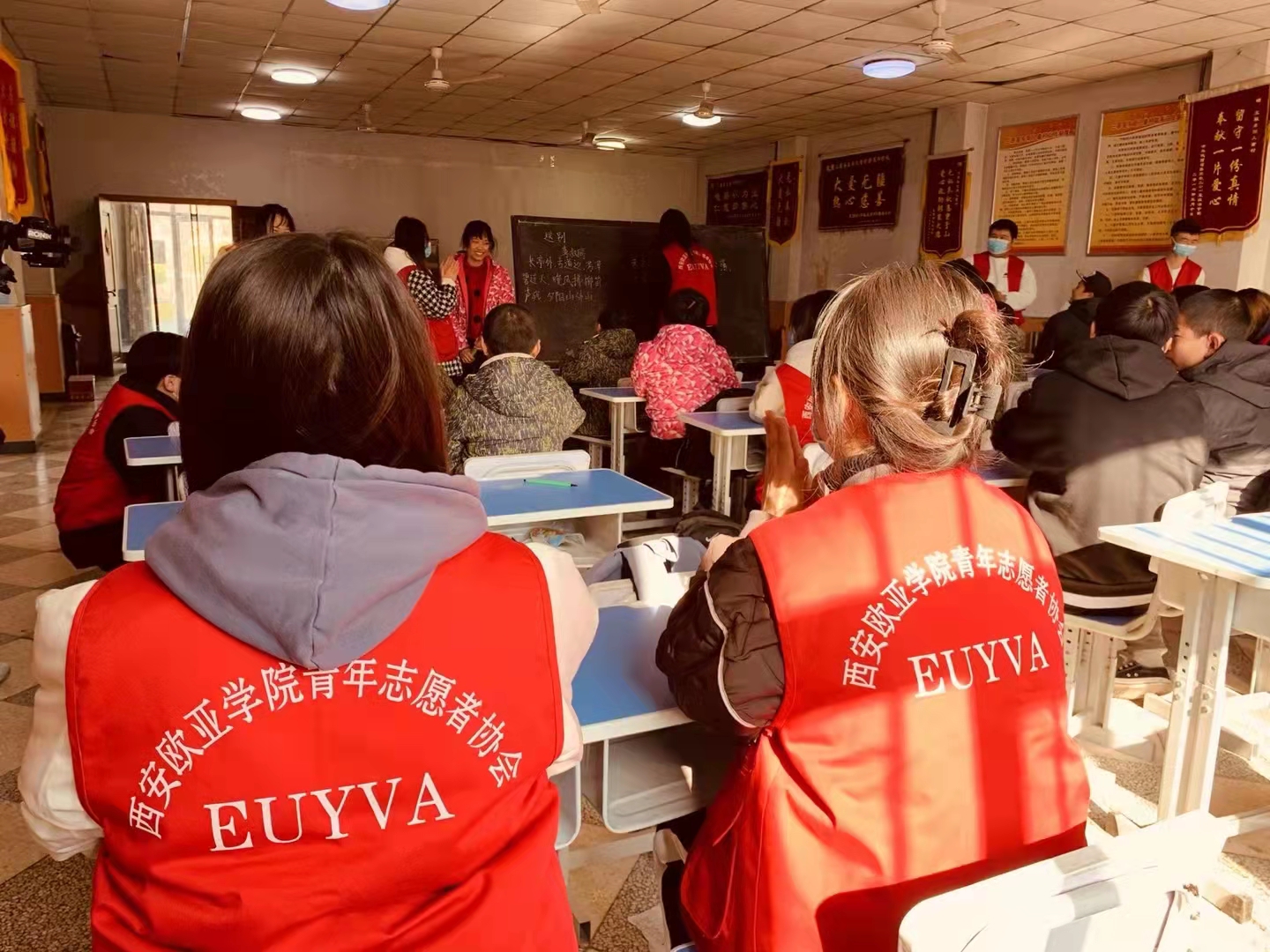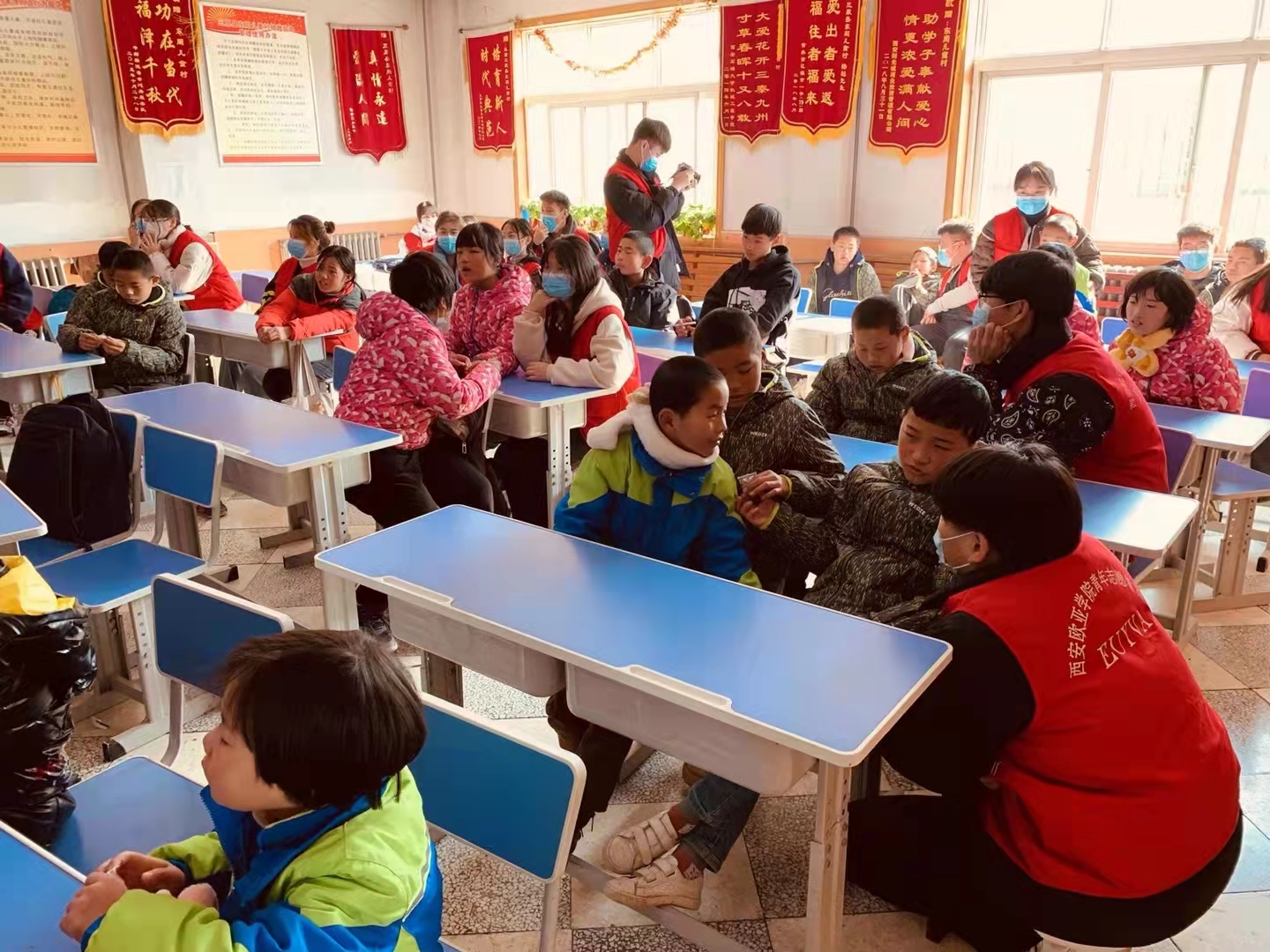 12月5日国际志愿者日,beat365组织了30名学生志愿者,在校团委张浩博老师的带领下,来到陕西省咸阳市三原县东周儿童村开展“为爱行百里,冬日暖童心”文艺支教活动。beat365为东周儿童村捐赠了米面油等生活物资,并为儿童村的38名小朋友分发了精美文具和零食礼包,希望这些物资能够在孩子们的学习和生活上起到一定帮助。