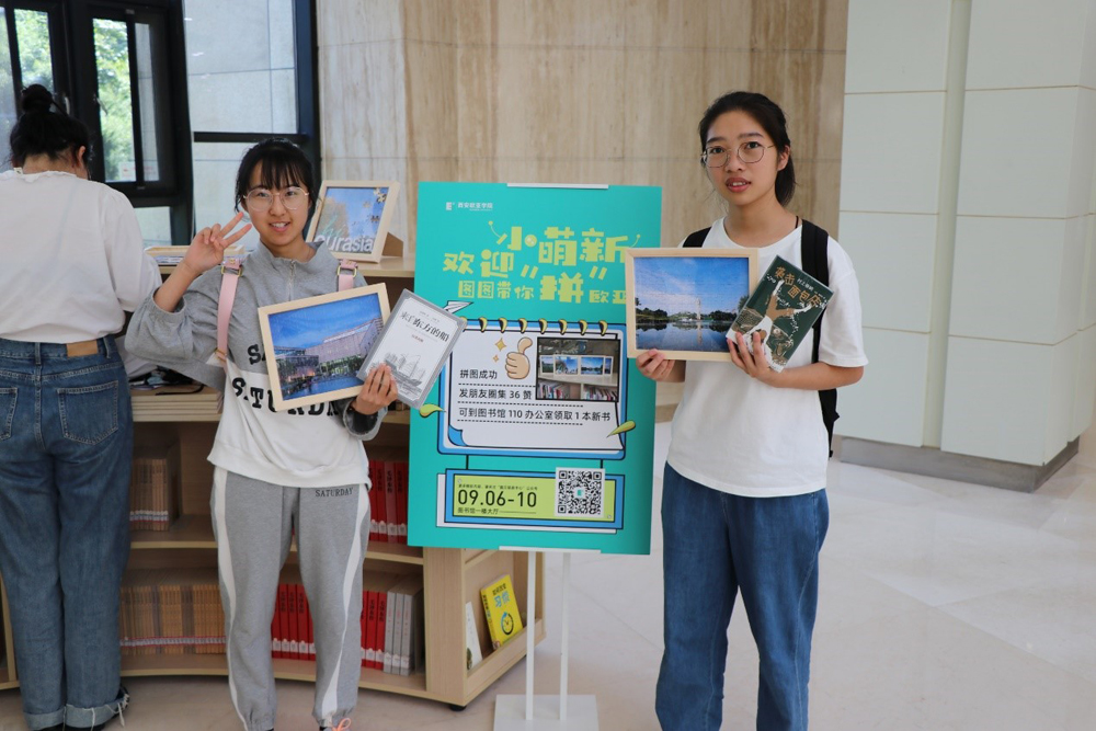 入馆教育活动同时,图文信息中心组织的图图带你“拼”欧亚拼图活动现场异常火爆,拼图成功的同学领取了欧亚图书馆的第一份惊喜,精美图书一本。