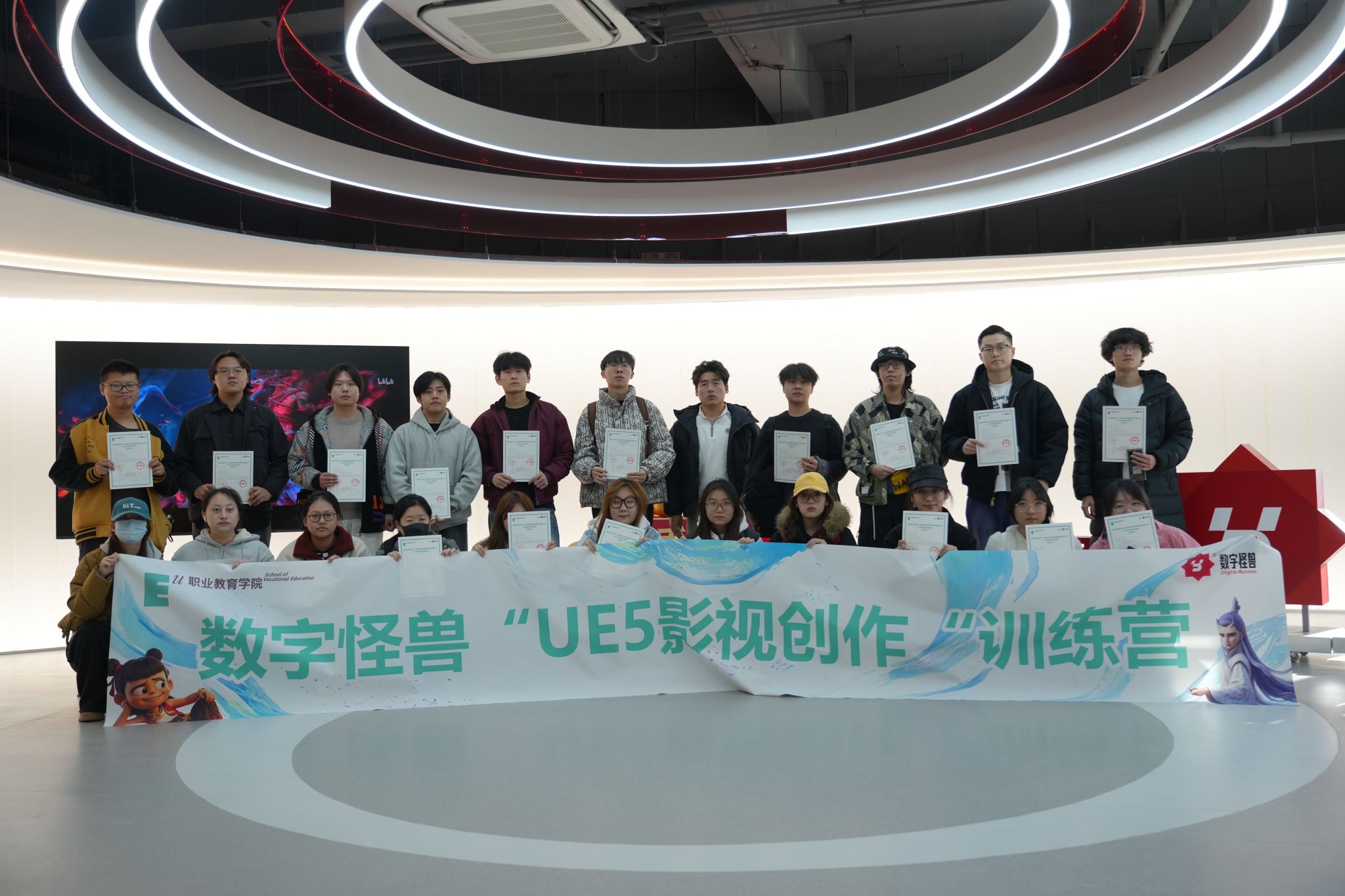 为强化学习成果,一场精心策划的企业参访暨结业证书颁发仪式在数字怪兽公司举行。学子们走进这家充满活力的动漫产业链主企业,近距离感受了顶尖项目从策划到诞生的全流程,浓厚的创作氛围与专业的技术实力让同学们深感震撼。