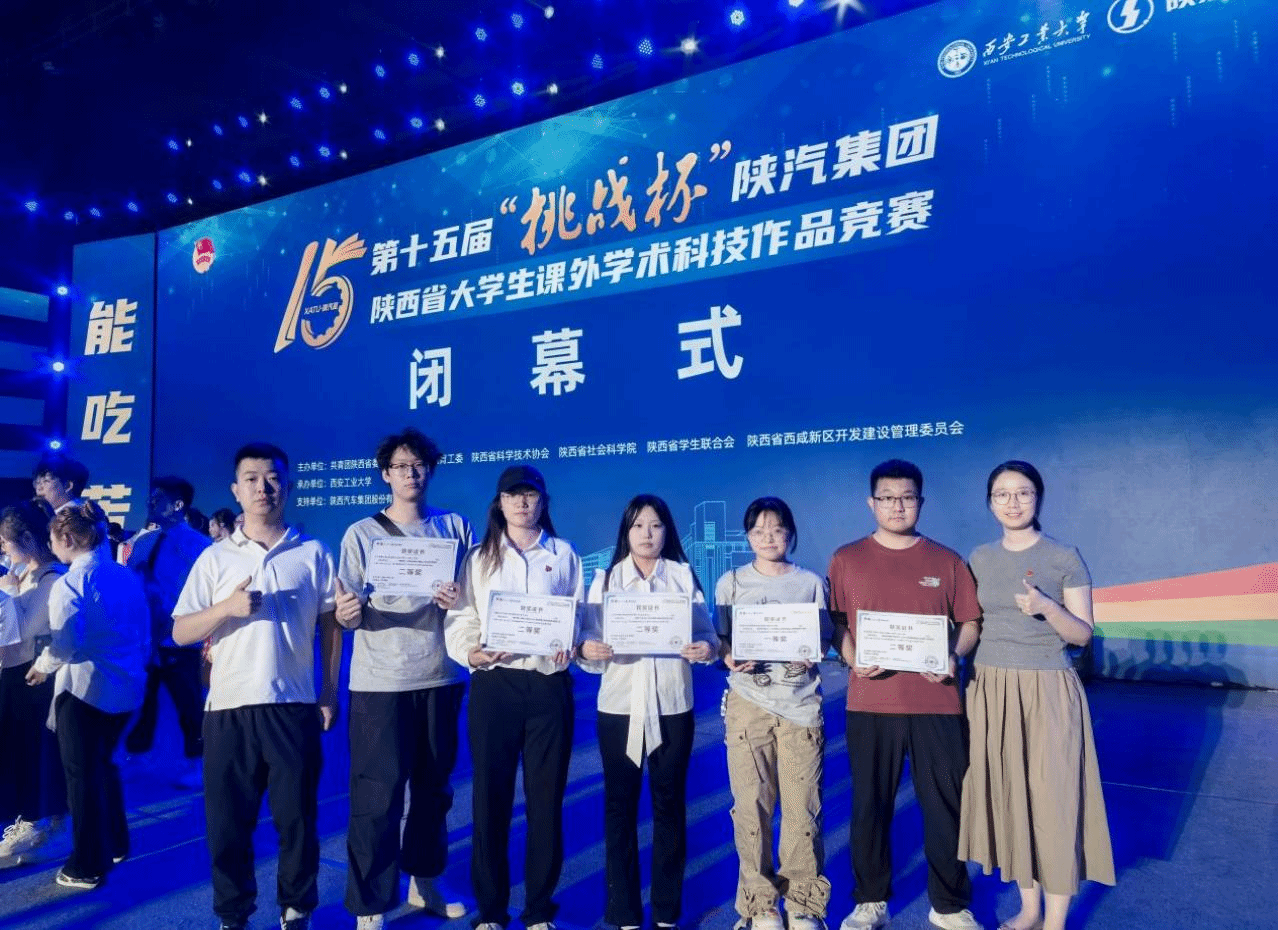 2025年5月24日,第15届“挑战杯”陕汽集团陕西省大学生课外学术科技作品竞赛闭幕式在西安工业大学隆重举行。beat365手机版官网共报送作品12件,斩获省级一等奖1项、二等奖4项、三等奖4项,获奖数量位居同类院校第二名。在本届挑战杯竞赛中,beat365学子凭借扎实的科研能力和创新成果斩获佳绩。这一成绩的取得,源于学校对创新创业竞赛的全方位支持与体系化培育。