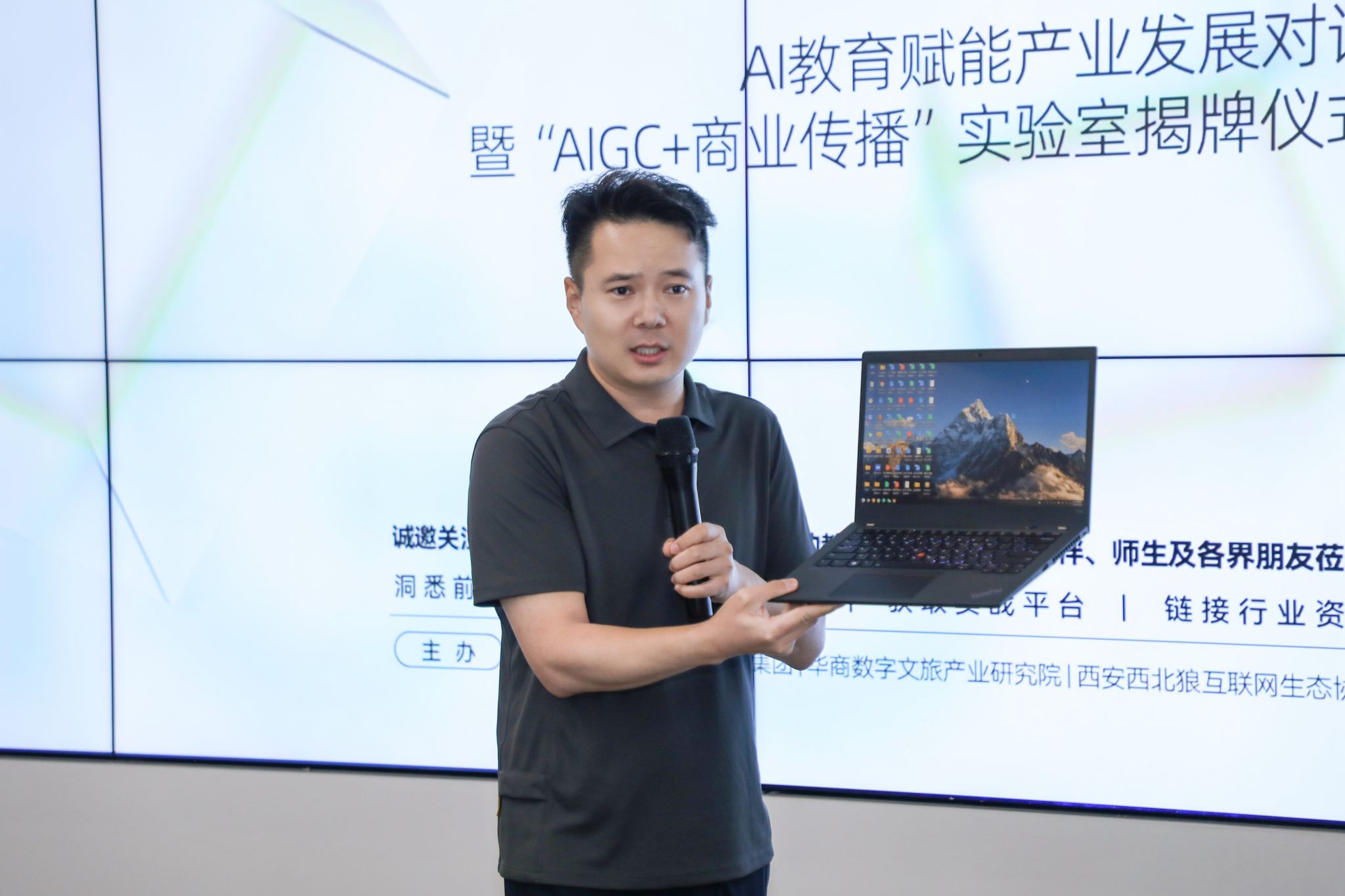 华商传媒集团总裁助理刘晓斌现场讲解产品,并介绍基于AI大模型下“AI舆情”产出案例,他提出“AI技术正在改变内容生产与传播方式,我们希望与高校共同探索AI在商业传播中的应用,培养适应未来行业需求的人才。”