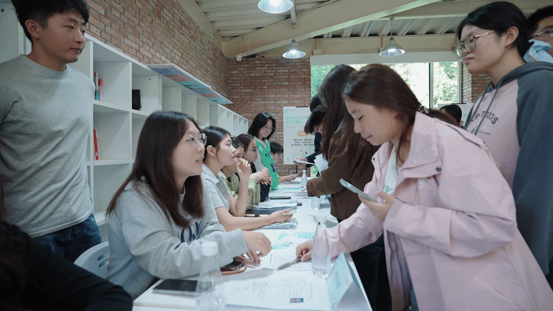 为保障招聘会高效有序开展,来自各个勤工助学岗位的学生助理结合自身在岗经验,全程深度参与前期筹备工作。同时,通过“欧亚学生生活辅导”微信公众号、校内宣传电子屏、分院和社区班群等多种形式发布招聘会信息,确保每一位有需求的同学都能及时了解招聘会相关安排。
