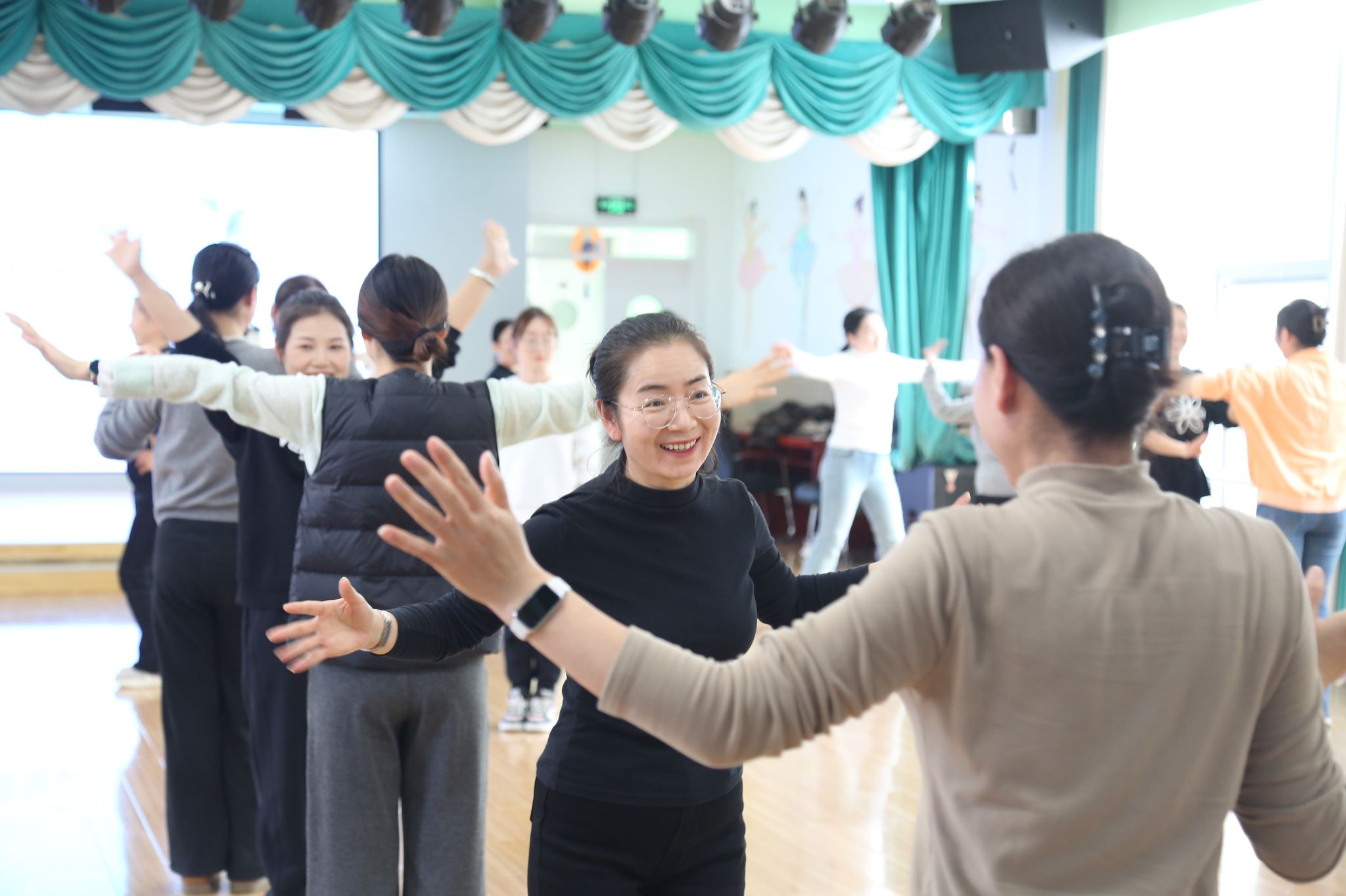蔡娜老师以“身体即媒介、动作即语言”为核心理念,引导教师逐步进入身体探索与合作创作。学员们通过“镜面模仿”、“协作留痕”等环节,体验身体感知与动作生成的过程。在音乐流动中,教师从“模仿者”转为“创造者”,重新发现身体的表达力量,强化“体验—反思—应用”的路径,帮助教师掌握创意动作教学方法,并通过“同伴观察—作品留痕—口头反思”的形成性评价,更清晰地理解教学行为与艺术生成的关系。学员们表示,通过学习和理解,让他们重新认识身体教学的教育价值,也为园所活动设计带来新启发。