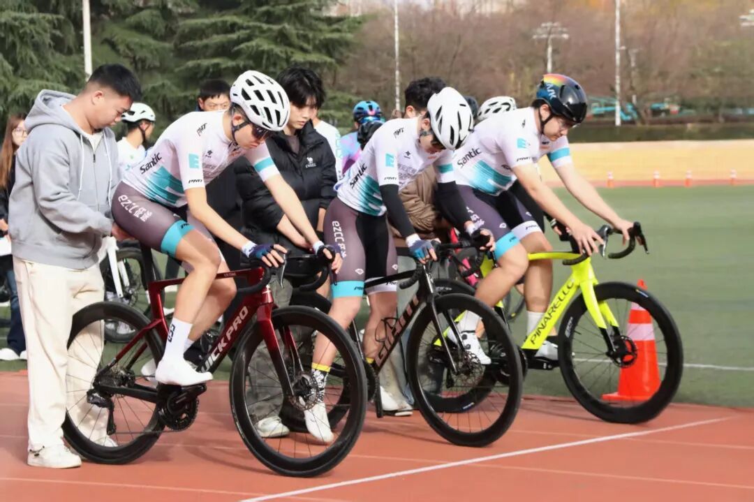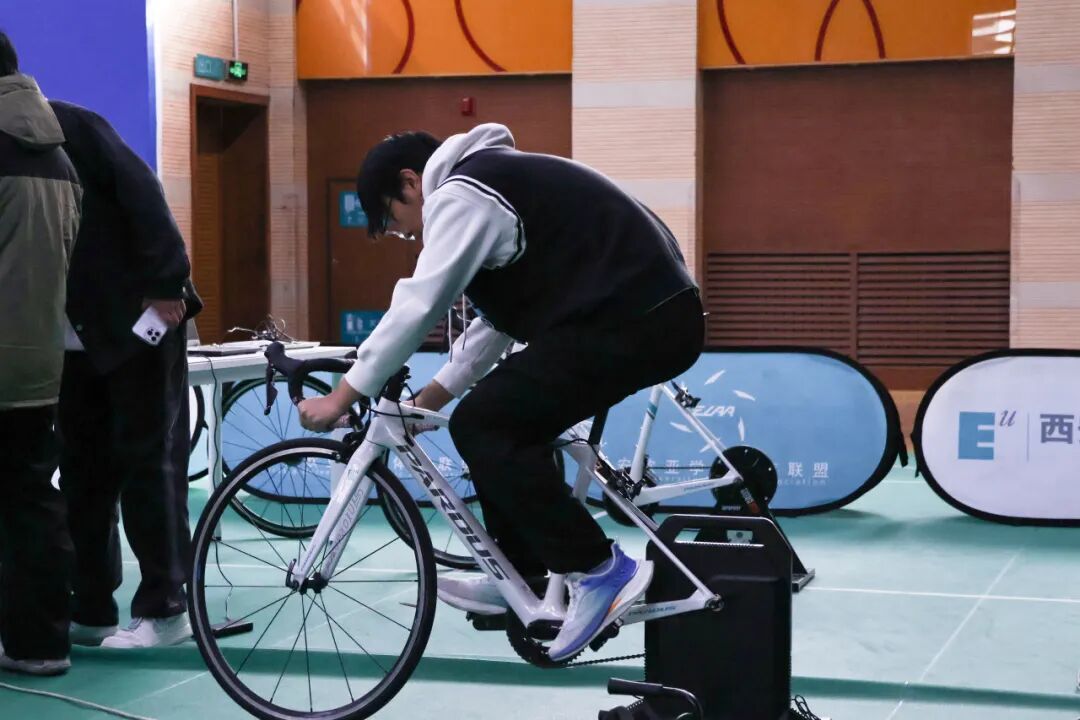 从午后到日落,双赛场的节奏始终踩着 “加速键” 不曾停歇。这边场地赛的决赛刚鸣枪,那边骑行台的计时成绩已经刷新;等骑行台选手的成绩刚出来,场地赛的最后一组选手也冲过了终点。两个赛场隔着建筑遥遥相望,助威声、呐喊声相互呼应,把整个校园的热情推向了一个又一个高潮。