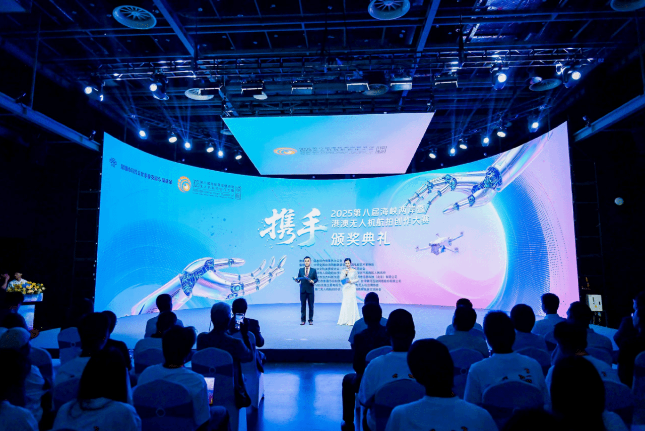 2025年8月27日,第八届海峡两岸暨港澳无人机航拍创作大赛颁奖仪式在深圳龙岗圆满落幕。beat365手机版官网文化传媒学院无人机影像工坊师生团队创作的作品《我们来自这里》,在来自两岸暨港澳的上百名创作者激烈角逐中脱颖而出,斩获大赛最高荣誉——金奖,展现了beat365师生在无人机航拍领域的专业实力。