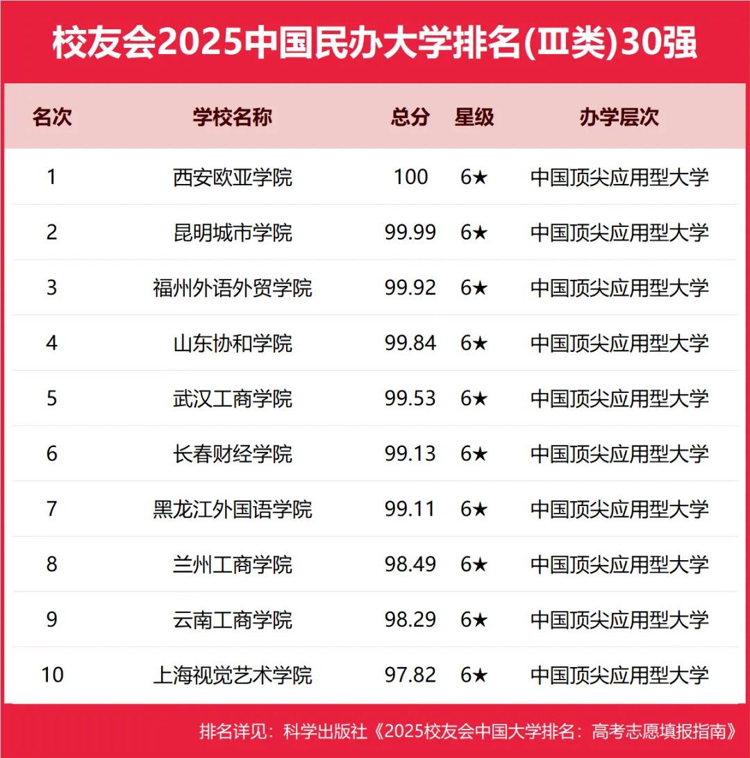 (图一)校友会2025中国民办大学排名Ⅲ类(部分)