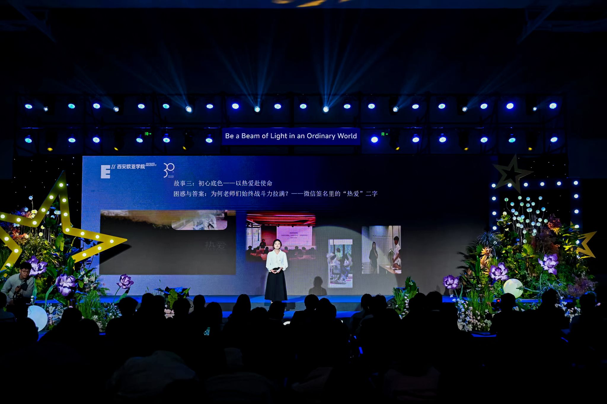 值得一提的是,颁奖环节通过“点亮自己、与光同行、追随热爱、照亮世界”四个篇章串连,勾勒出欧亚er“如何成为一个完整的人”的成长路径。