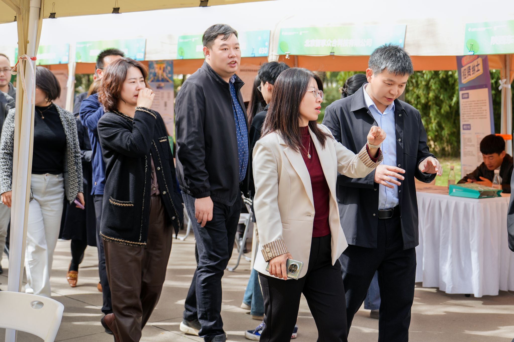 张乐芳和董事会秘书胡惟悦还与企业、学生亲切交谈,了解学生就业实际需求及企业用人标准。张乐芳嘱咐就业部门,一定要扎实做好学生与企业之间的链接工作,真正为学生找到好企业、好岗位。各二级学院院长、就业及校企合作负责人也与企业进行了深入交流与沟通。