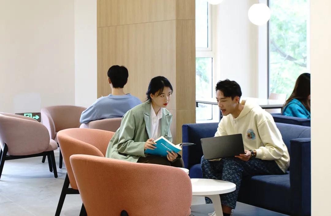 △ 在南客厅这个复合型空间里,学生们可以学习、会客、休闲、组织节事活动等