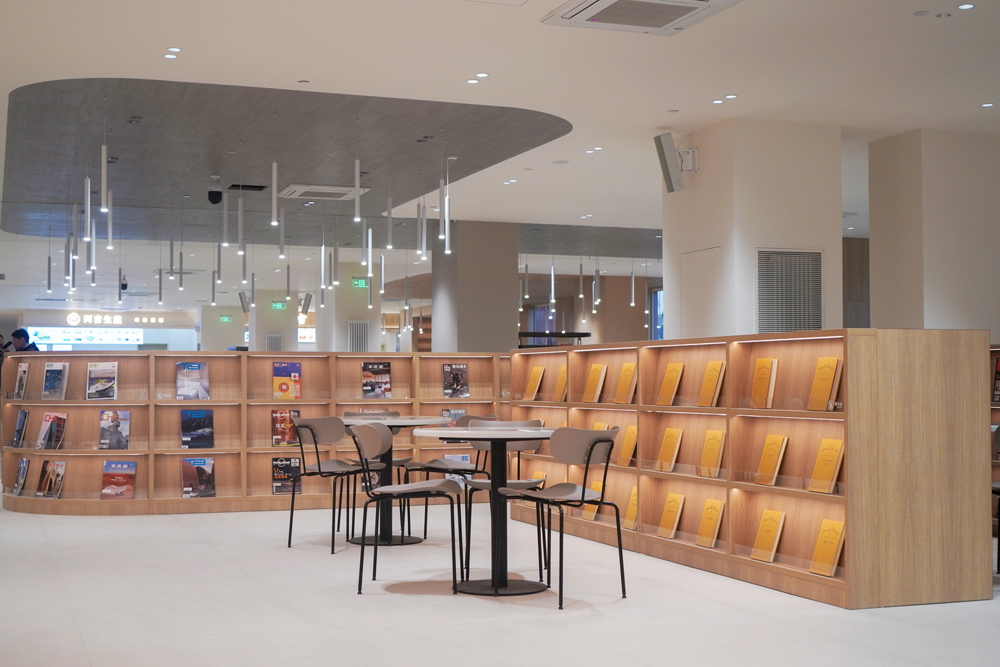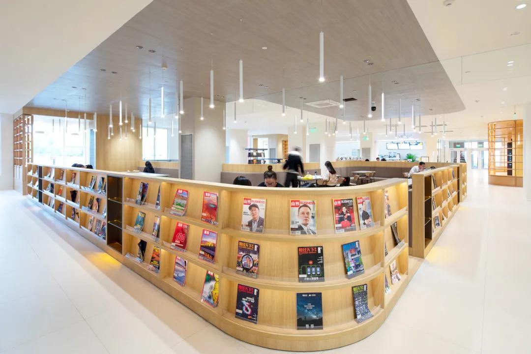 多吊顶灯光挂饰,柔和而不打扰的光线,避免了传统餐厅或综合体对人阅读视线的干扰,增强学生在此光线下的学习渴望。