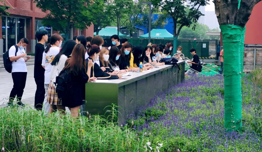 大楼前的景观施工地,常常有艾德艺术设计学院师生的身影。现场景观环境速写、手绘及分析景观植物配置方案,让虹桥学生中心成为艺术的实践场所;