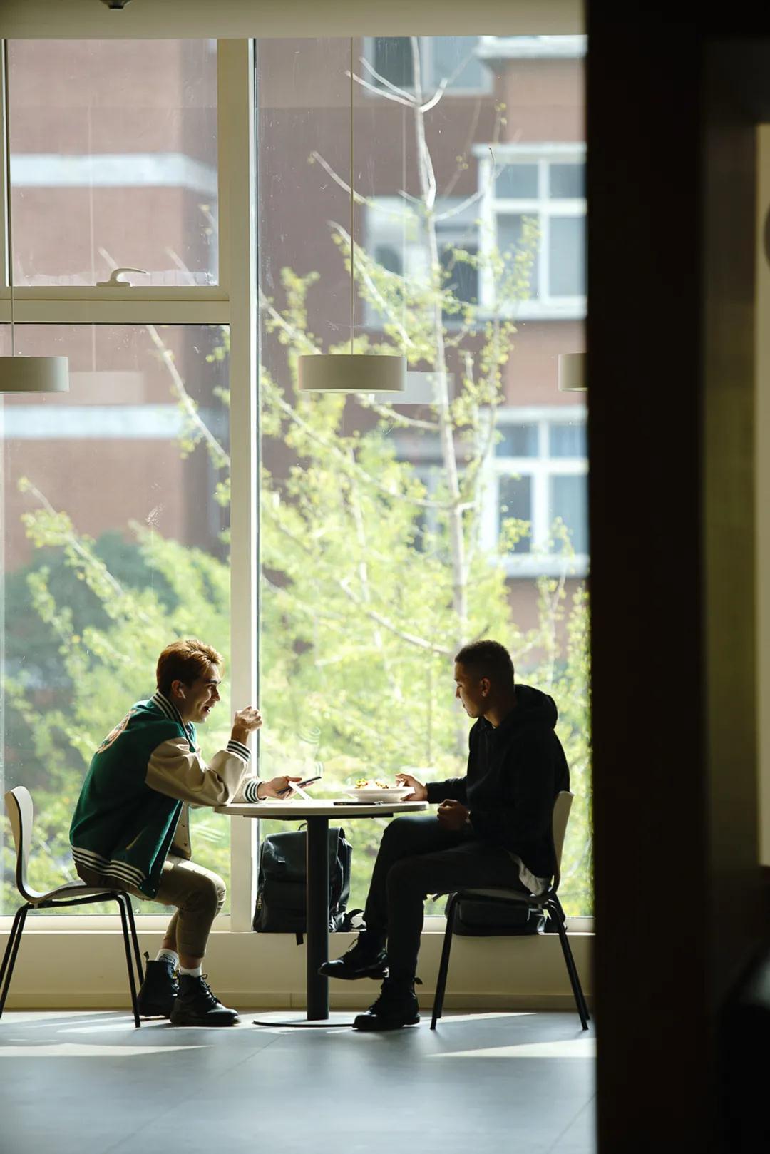 △ 就餐区采用暖色调基底,搭配木质餐桌、符合人体工学的餐椅与沙发,不同氛围、不同家具的组合,以适度的间隔感和私密性,深受学生喜爱。