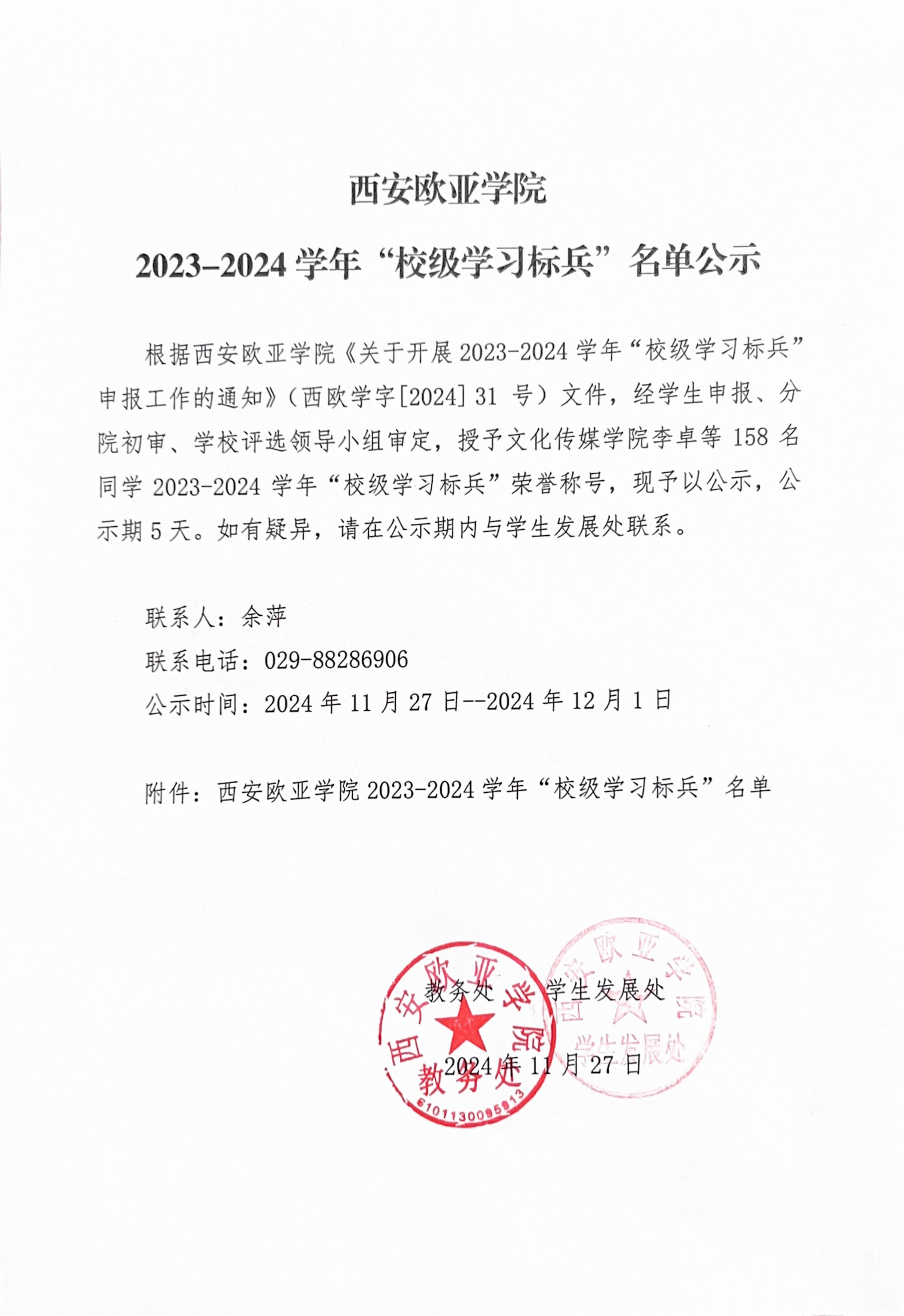 beat365手机版官网2023-2024学年“校级学习标兵”名单公示