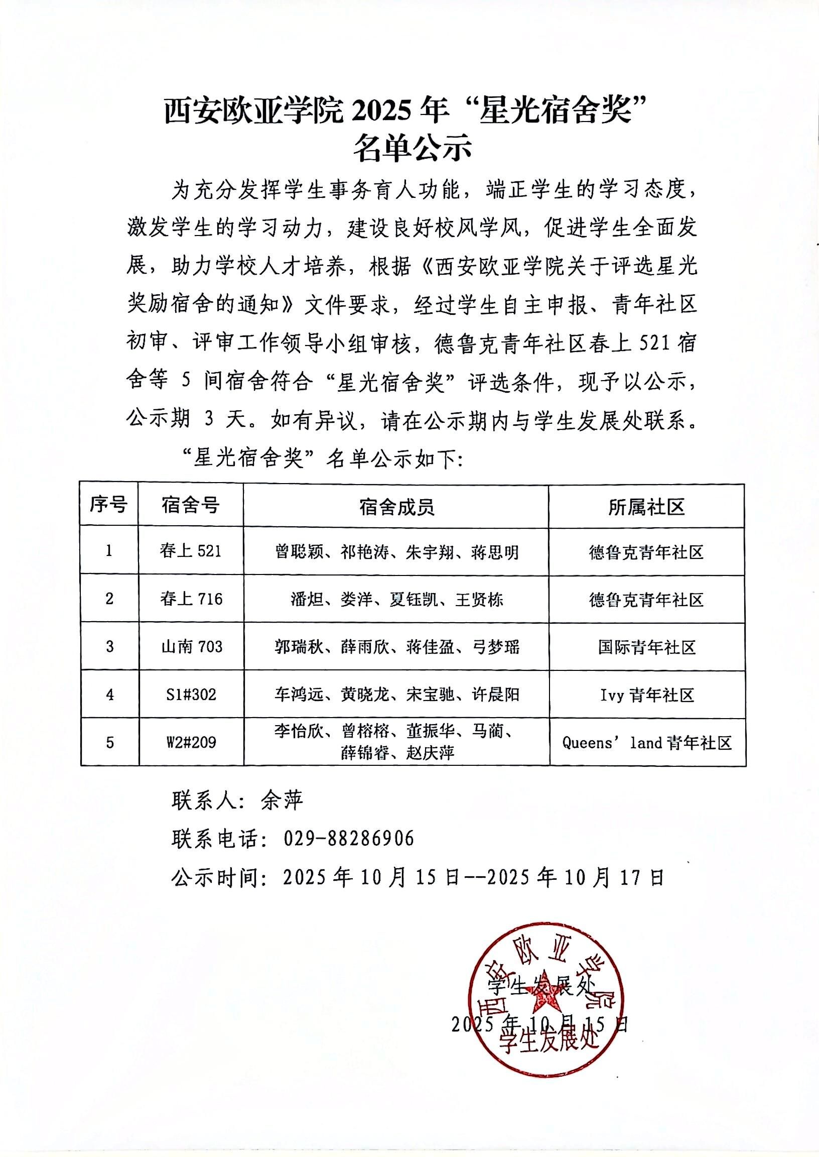 beat365手机版官网2025年“星光宿舍奖”名单公示