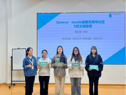 空山新雨后,天气晚来秋。伴随着秋天的第一场雨,9月29日下午2:00在西C001Queens’land和德鲁克青年社区迎来了月度文明宿舍表彰大会暨卫生标准培训会,参加本次大会的成员有辅导员、新生宿舍长和文明宿舍代表,共计200余人,大会由社区学生会生活部部长刘心怡同学主持。