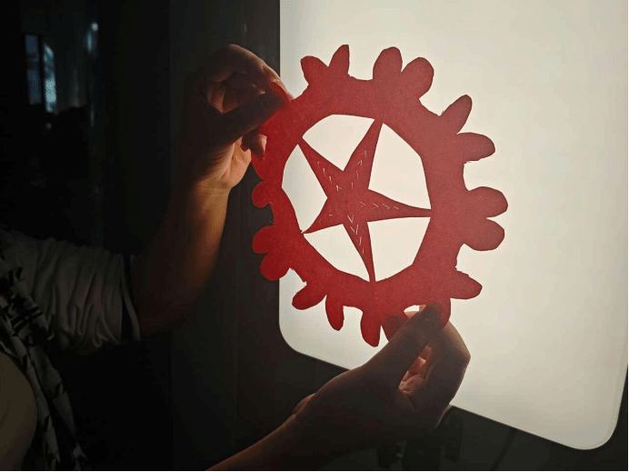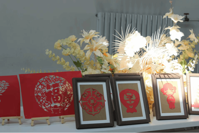 同学们选择自己喜欢的作品以及拍摄场景,由工作人员记录下本次活动的美好时刻。每一张完成的剪纸作品都是一颗治愈心灵的种子,在此刻悄然绽放。